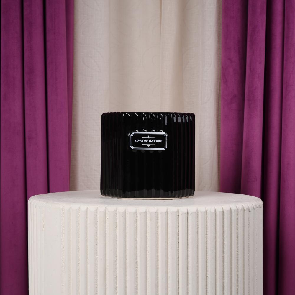 فازة ورد سيراميك سداسي بتصميم هندسي عصري باللون الأسود