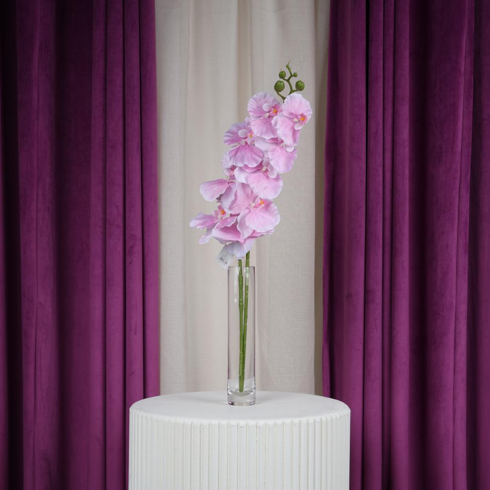 ساق أوركيد صناعي بتصميم عصري وأنيق، مثالية لإضفاء لمسة من الأناقة والرقي على أي مكان. تتميز هذه الساق بواقعيتها المذهلة، حيث تبدو أزهار الأوركيد وكأنها طازجة قطفت للتو.