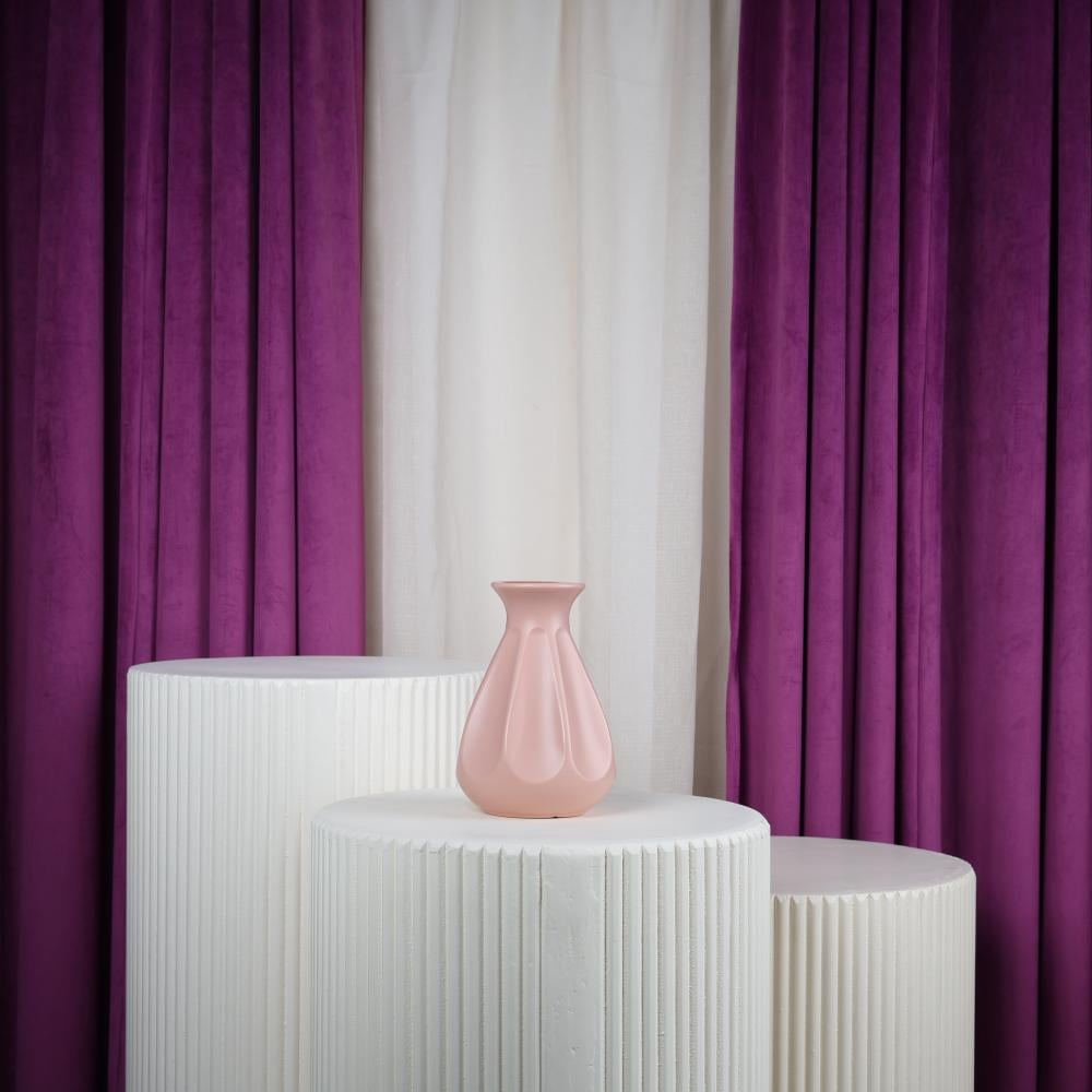 فازة ورد بلاستيكية لون وردي بتصميم عصري وأنيق، مثالية لترتيب باقات الورد المتوسطة والصغيرة.