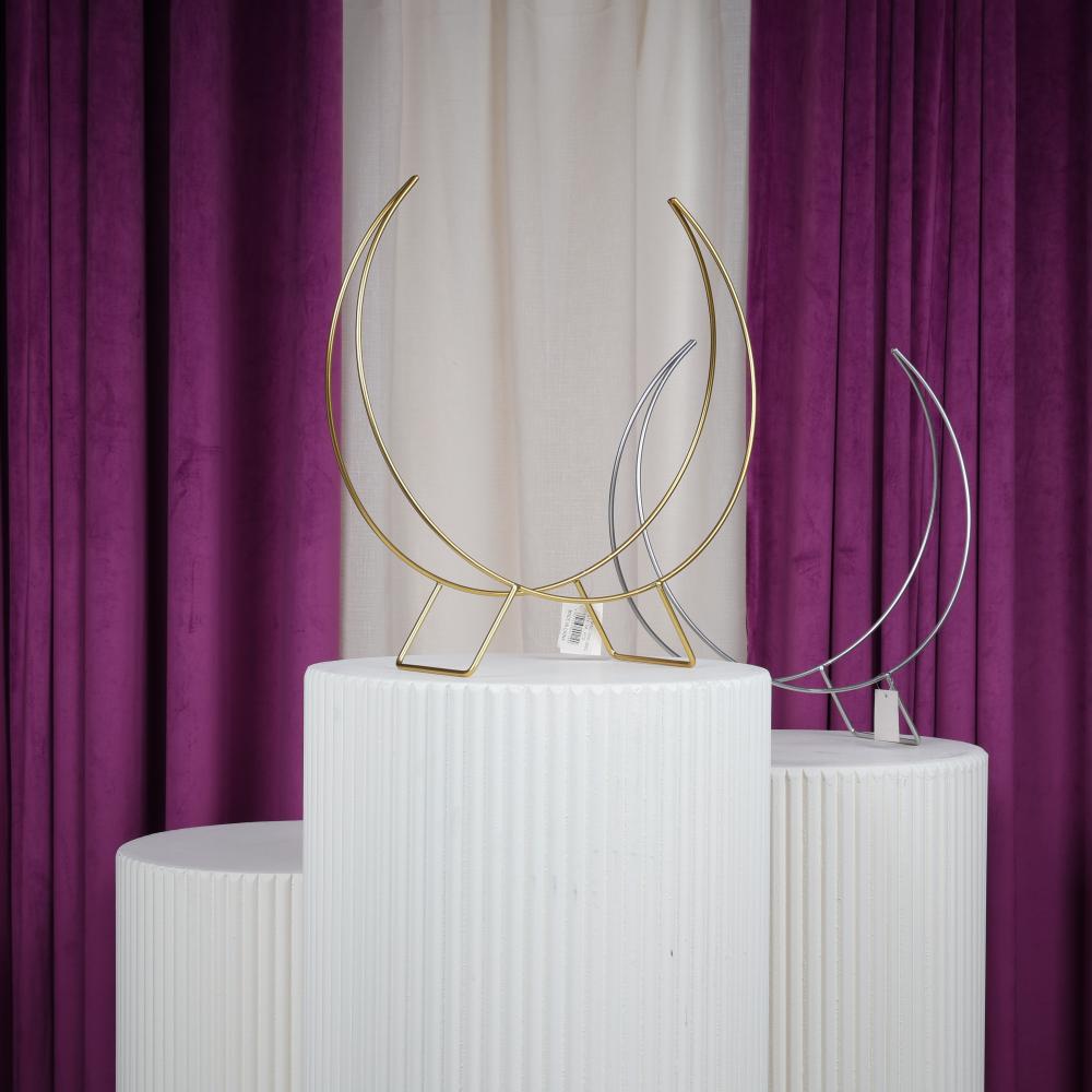 يقدم هذا الستاند تصميمًا عصريًا وأنيقًا على شكل هلالين متداخلين، مصنوع من الحديد. يضفي هذا التصميم البسيط والأنيق لمسة من الرقي والأناقة على أي ديكور.