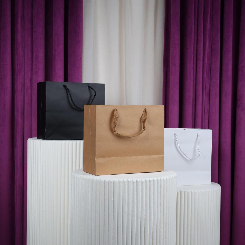 جودة عالية: مصنوعة الأكياس من ورق مقوى عالي الجودة، مما يضمن متانتها وقدرتها على حمل الأوزان المتوسطة. كما أن الأيدي مصنوعة من حبل قوي يضمن سهولة الحمل.