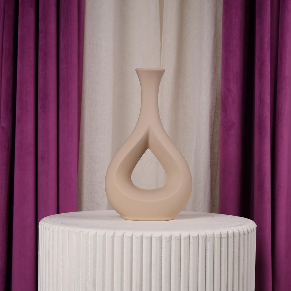 فازة ورد سيراميك بتصميم هندسي عصري باللون البيج