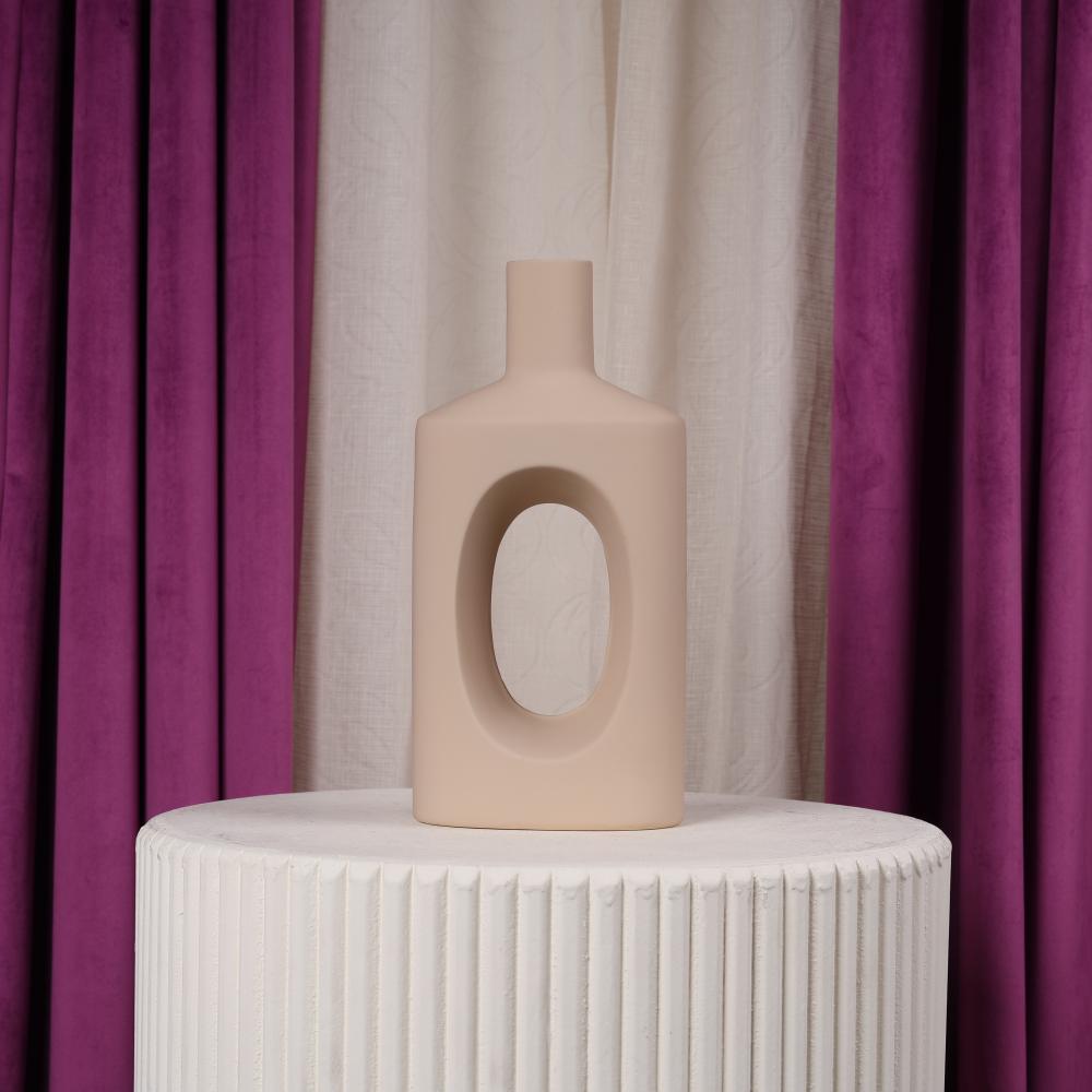 فازة ورد سيراميك بتصميم هندسي عصري باللون البيج