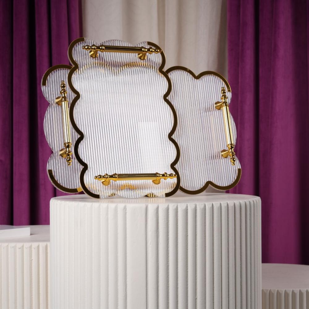 أضف لمسة عصرية وأنيقة إلى تقديماتك مع طقم تباسي الأكريليك الشفاف الفاخر. يتميز هذا الطقم بتصميمه البسيط والعملي، مما يجعله مثاليًا لتقديم مجموعة متنوعة من الهدايا والأطعمة والمشروبات أو استخدامه كقطع ديكور عصرية تبرز جمال معروضاتك. مصنوع من الأكريليك عالي الجودة، يتميز هذا الطقم بمتانته، خفة وزنه، وسهولة تنظيفه، مما يجعله إضافة عملية وأنيقة لأي منزل أو مناسبة.