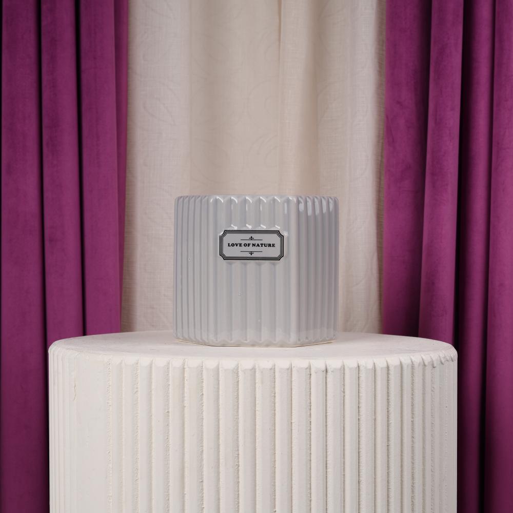 فازة ورد سيراميك سداسي بتصميم هندسي عصري باللون الرمادي