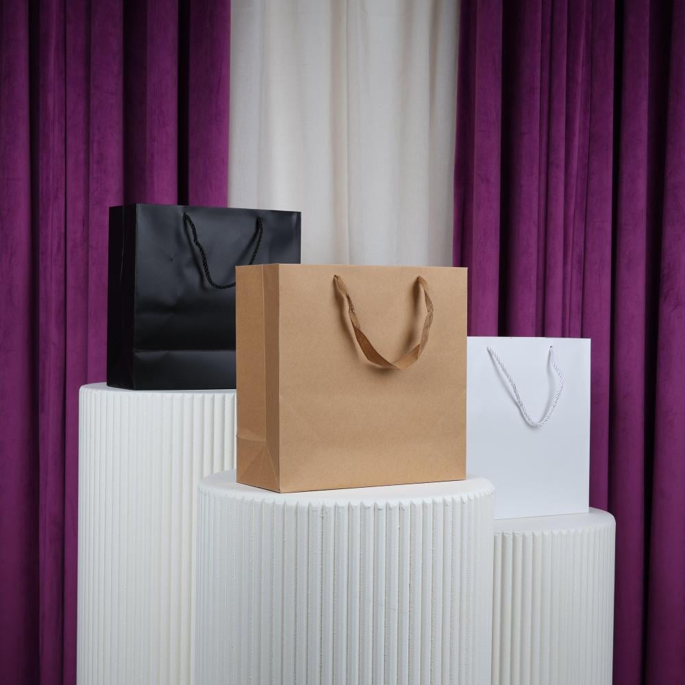 جودة عالية: مصنوعة الأكياس من ورق مقوى عالي الجودة، مما يضمن متانتها وقدرتها على حمل الأوزان المتوسطة. كما أن الأيدي مصنوعة من حبل قوي يضمن سهولة الحمل.