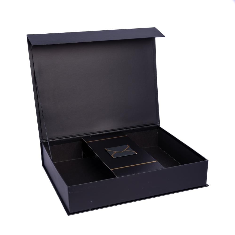 تصميم أنيق: تتميز العلبة بتصميمها البسيط والأنيق باللون الأسود الكلاسيكي، مما يضفي لمسة من الفخامة على أي هدية.