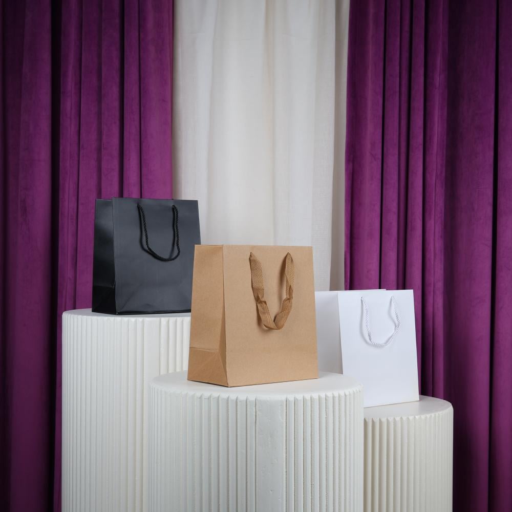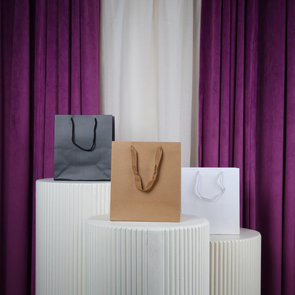 درزن أكياس ورقية كرتونية أنيقة مع شيال : مجموعة متكاملة من 12 كيس ورقي مربع صغير بتصميم عصري وأنيق مع شيال عملي. مثالية للهدايا ولحمل وتخزين الأدوات الصغيرة ومستحضرات التجميل.