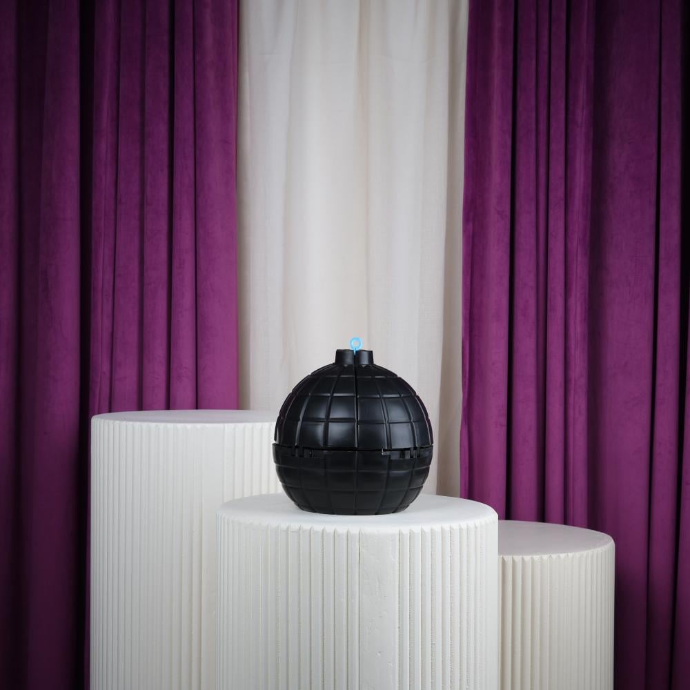 - تصميم فريد: الشكل الكروي المميز للقنبلة يجعلها قطعة جذابة وملفتة للنظر.