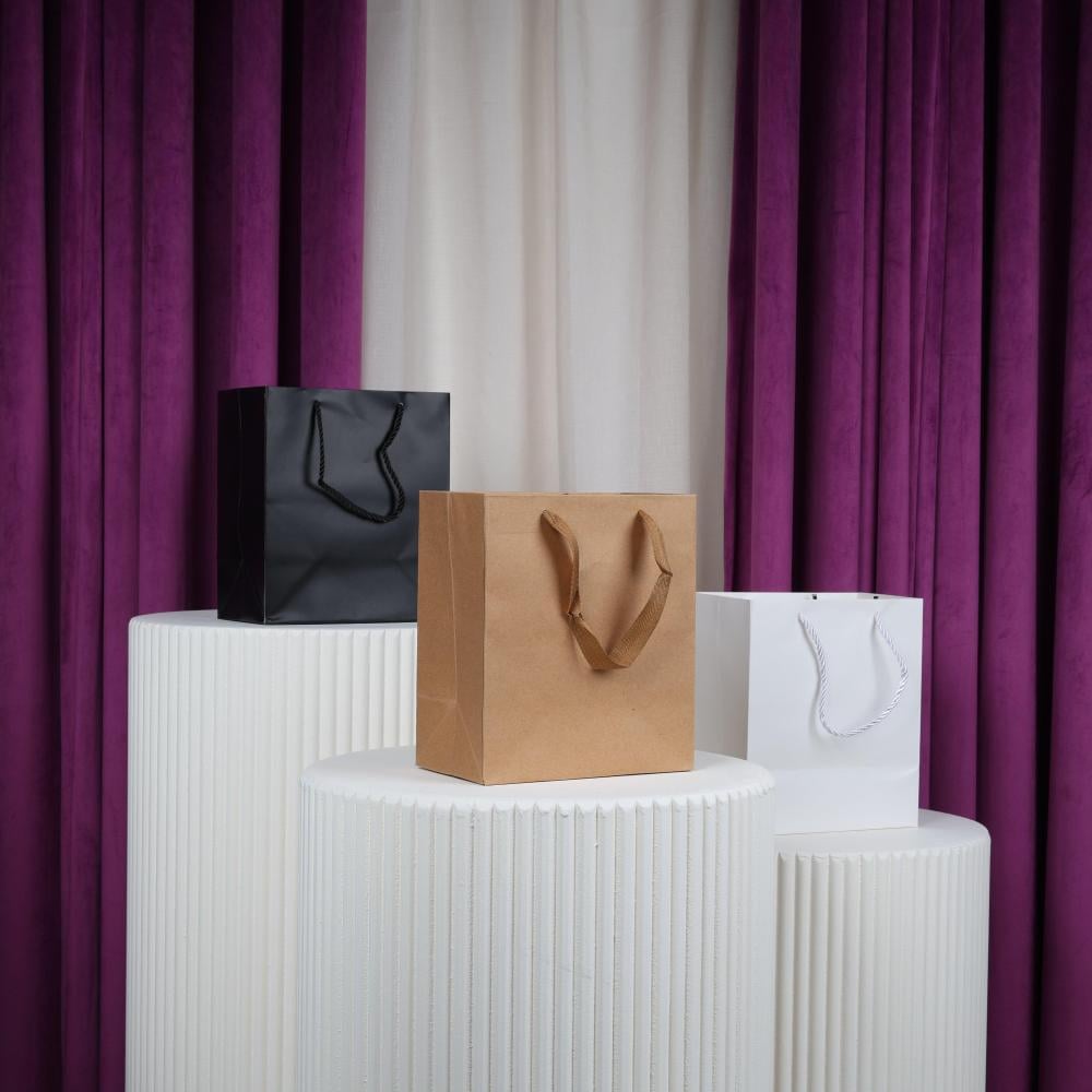 جودة عالية: مصنوعة الأكياس من ورق مقوى عالي الجودة، مما يضمن متانتها وقدرتها على حمل الأوزان المتوسطة. كما أن الأيدي مصنوعة من حبل قوي يضمن سهولة الحمل.