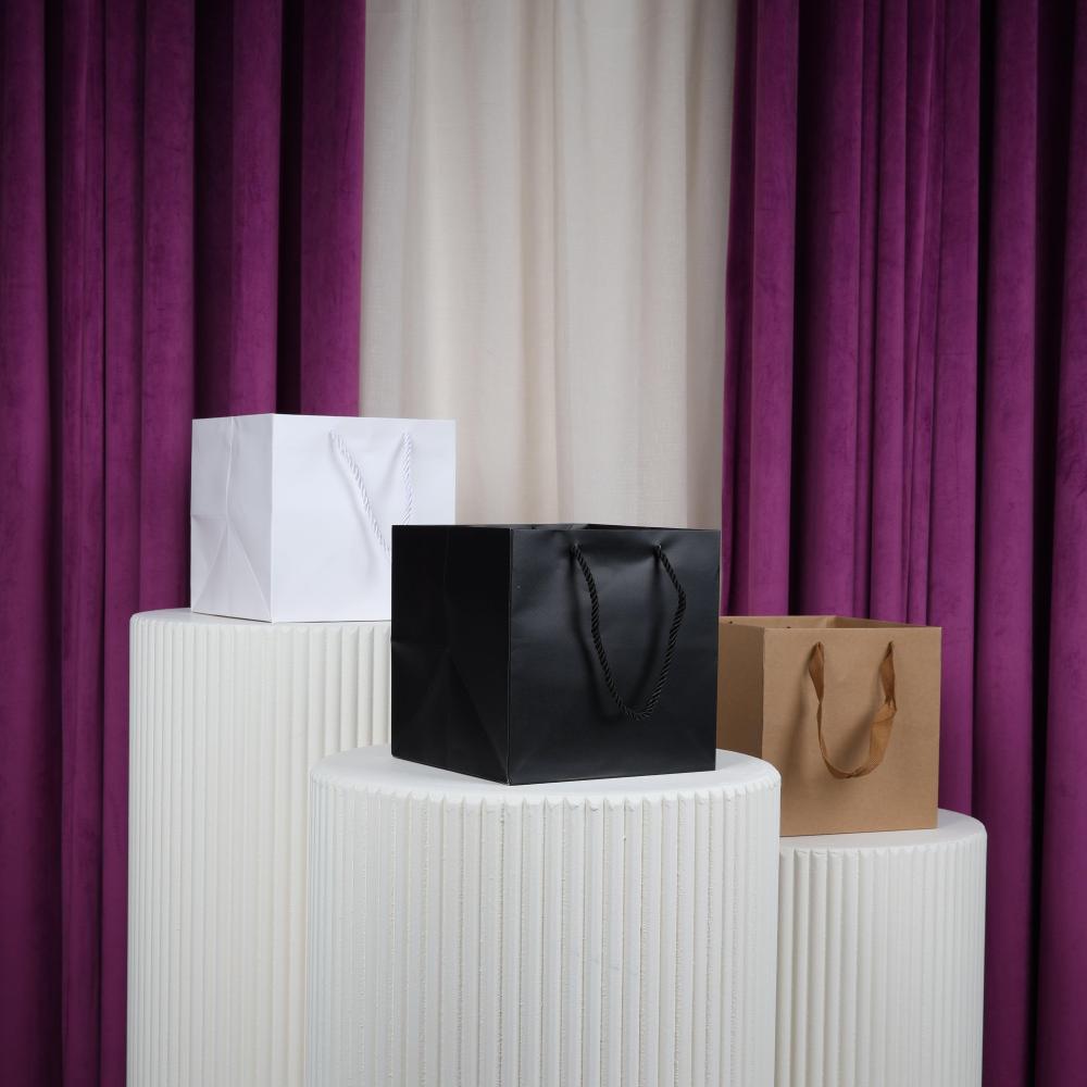 تتميز هذه الأكياس بتصميمها المربع الأنيق والعملي، حيث تجمع بين الشكل المميز والجودة العالية. تأتي بألوان متنوعة لتناسب جميع الأذواق والمناسبات، مما يجعلها مثالية لتقديم وتغليف الهدايا والمنتجات المختلفة.