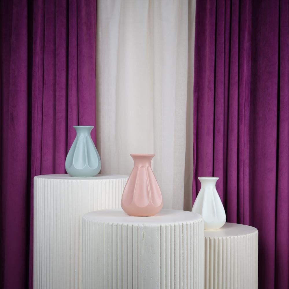 فازة ورد بلاستيكية لون أبيض بتصميم عصري وأنيق، مثالية لترتيب باقات الورد المتوسطة والصغيرة.