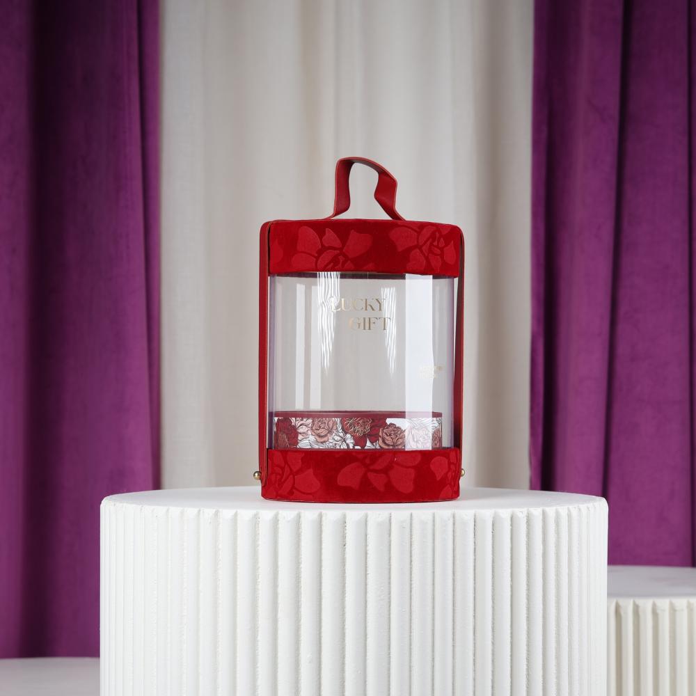- علب هدايا دائري عنابي : علبة دائرية بتصميم عصري وأنيق مصنوعة من مواد عالية الجودة. تتميز بغطاء وشيال يبرز جمال الهدية بداخلها، وبقاعدة مخملية ناعمة بألوان جذابة. مثالية لتقديم الهدايا في المناسبات الخاصة.