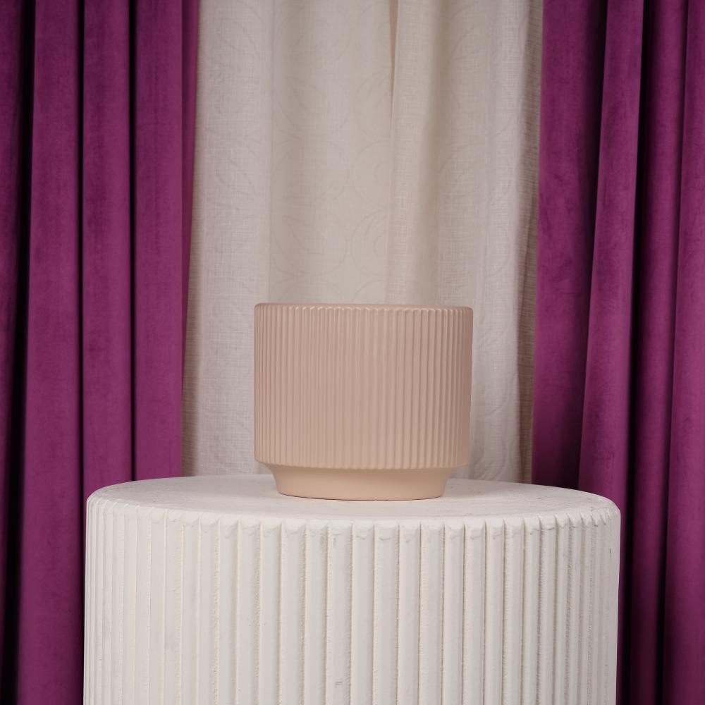 Ceramic flower vase with a modern geometric design in beige